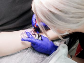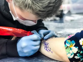 Подбирать краски и иглы, оборудовать рабочее место, стерилизовать инструменты и работать с тату-машинкой.